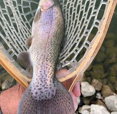 A fly fisherman is used to that ballet feel and look, not feeling the offering go forward rather, watching it fall as gently to the water as the whole procedure casting, was gentle. Like a romantic, seductive dance. I looked like I was chopping invisible wood. And when that heavily mismatched to a fly rod jig reached the end of the fly line on the forward cast, often the feeling was that it was going to pull me in. Even against the wind! But when it hit the water and I could strip line like a slave pulling rope building the Pyramids, I started catching trout. And more trout. In fact, since the wind was going to do this all day, and I'd already gotten creative and broken several of the fly fisherman's codes, I could rip lips to sunset. But the arm and shoulder cutting wind harder than I remember ever splitting wood-I was done. Besides, now that I had their number I went into my trance that tends to shut off being aware of a lot of other things happening. And today, not staying aware of those wind gusts that had already almost taken me out twice, wasn't smart.