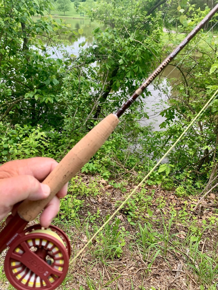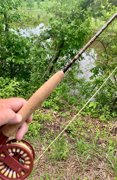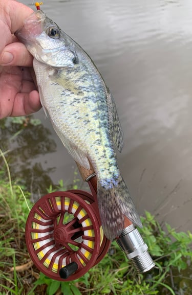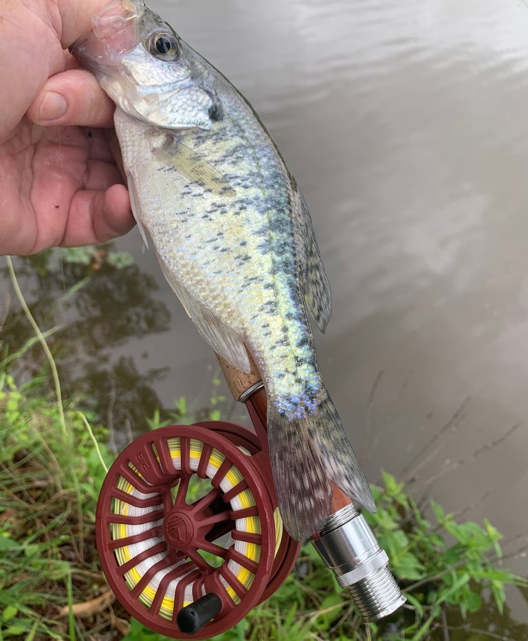 I returned today, to yesterday's scene of crappie and bluegill madness. But today, with an awesome new toy-the Redington Classic Trout 3 WT fly rod at 7 1/2 ft, and the Redington Zero "no drag system" fly reel. Both designed for old guys like me, that are beginning to lighten their load. This outfit weighs...nothing!
