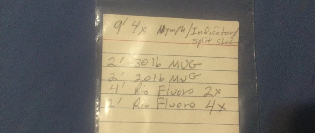Buy ya a stack of Maxima Ultra-green, some Rio fluorocarbon to use at the hinge to the end (because it naturally sinks better than mono) and build your own nymph (subsurface flies) leaders. Go ahead and add some stiffer Maxima clear for your leader butts if you wish, but just know that their clear has more memory than I had at any point in life. And I've always had a great memory! Still got some bucks left over that you don't want to spend on say...silly things like food...buy some Sunset Amnesia for your leader butts. As the name indicates, it has the (no) memory of a child home alone for a time, that let the dog out of the tub and run through the white furniture living room, shaking and shedding the muddy bath water all the way.