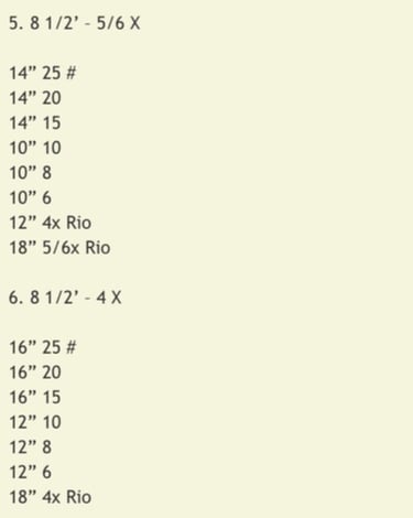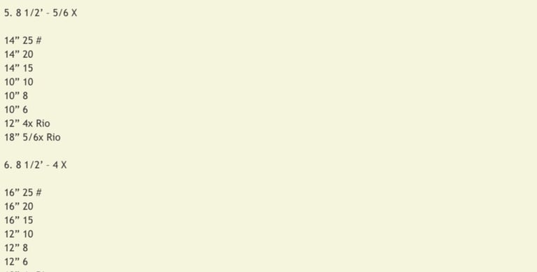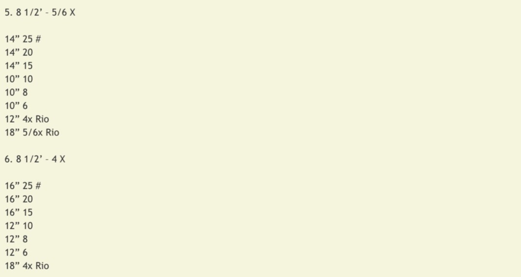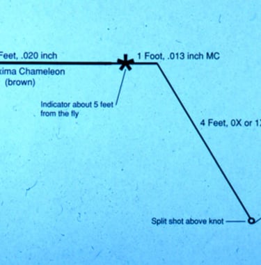 Here's what disturbed me most about building leaders. I kept finding formulas like this one. Count how many knots that is! My hillbilly formulas were simple. Enough searching, and I found that it's accepted if not expected that building nymph and streamer leaders should be...simple. It's the dry fly leaders that need the taper engineered by a doctorate of engineering, to allow the dry fly to land with barely a ripple. But I dry fly it 20% of the time! Then the next blessing came along. A rather complex creature from Ohio made a bold statement. Complex because when he explains "fly fishing", there's always a whiteboard involved. And much of the time I'm of the opinion that he's overthinking it. So imagine my surprise when he "whiteboarded" a three section leader (not including the one section of tippet). Imagine my celebrating out loud when he added, "But if you're going to dry fly fish, buy the manufactured tapered leaders." (Instead of constructing the multi-knot, multi-headache leader formula just pictured.)
