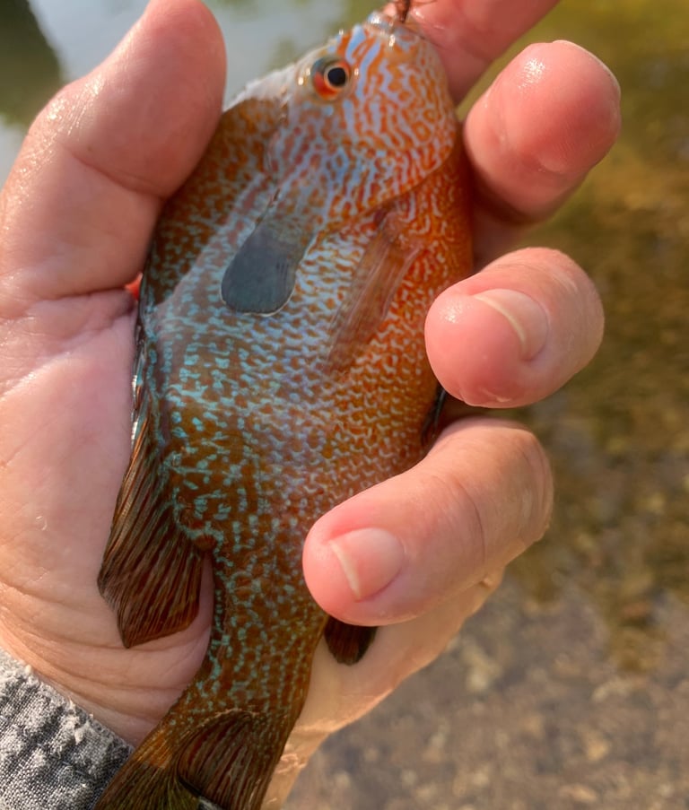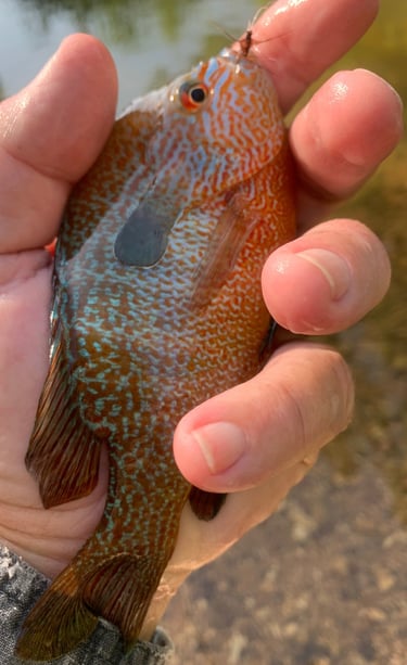 I caught 129 primarily long ear sunfish, but a couple bluegill and bass as well, in a little under four hours today. My dry fly fishing is where you'll find my fishing weakness.