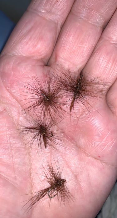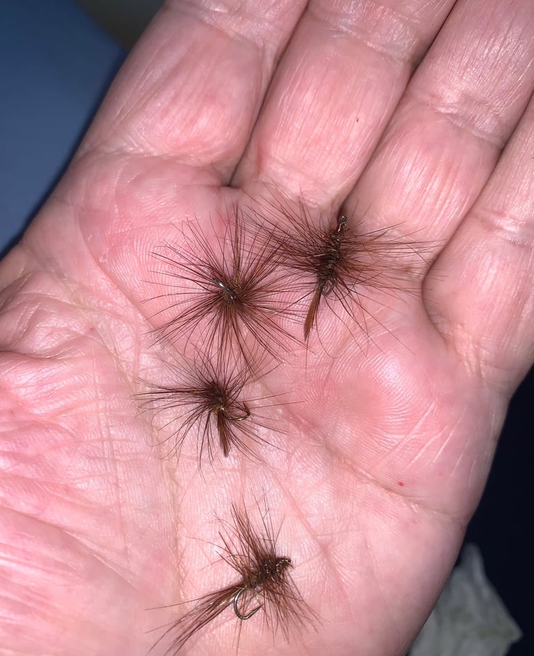 Nonetheless, a fun time. These Palmer flies that I tie were on fire. I like Palmers. You can keep fishing them as a dry being sure to dry them with false casts each pursuit ,or rub some floatant into them, or you can do what I found very effective. Starting them as a dry and then making a couple twitches and pulling them just subsurface.