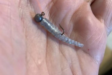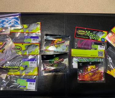 Terminal tackle. If I could carry only one ultralight lure year round, it would be the marabou jig. But there are times and species that I find the most stupidly simple plastic bait slid over a jig style hook, to be better. Crappie and Trout Magnets by Leland Lures are my choice. Most of my published trophy pics...were caught on the Creme Lure tube jigs from Walmart. But there's been a noticeable reduction in fish numbers caught with that size lure the last few years, so I downsized to the Magnets when not throwing marabou. Still, in an effort to rekindle fond memories I tied a yellow tube jig on this week and caught a trophy wiper. But the "big lures bigger fish" philosophy IS NOT a rule to be followed. Fish key on size based on appetite which is based on a number of considerations.