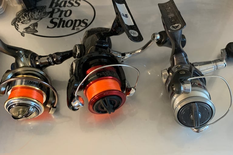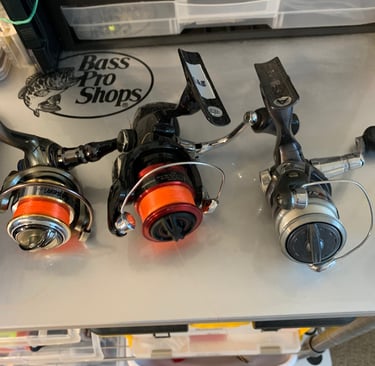 The reel on the left is a newly acquired Lew's. Smooth as butter. But a drag system that has already caused me to lose fish trying to adjust "on the fly". Additionally, I had a Pflueger President just as smooth as the Lew's, but with a slightly better drag system. However, when I took the Pflueger apart for cleaning, upon re-greasing and assembling, the engineering tolerances were so precise I could never get it back to the smoothness of "new", or even that at the point of disassembly. It's easy to decide you'll never take one apart, so the slightly more expensive reel is the choice. But dropping it in the slop of a river or lake, or going down in the mud and burying any portion of an exposed opening on the reel, it will need immediate teardown, cleaning, and reassembly. Try to turn the handle-the gears, test the drag...you'll see what I mean. But the quality consistency of each Lew's, Pfueger, and likely other slightly more expensive reels is usually awesome. Line up five cheap Shimano reels, give the handle of each one a spin and you'll likely find about three different "feels". Again, a feature that I pick the best "feel" and proceed to "remanufacture" the other reels lacking that feel, to get there. Easy to do with minimal parts, shims, and Japanese engineering.