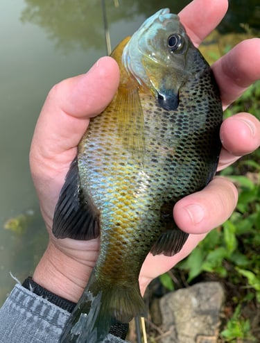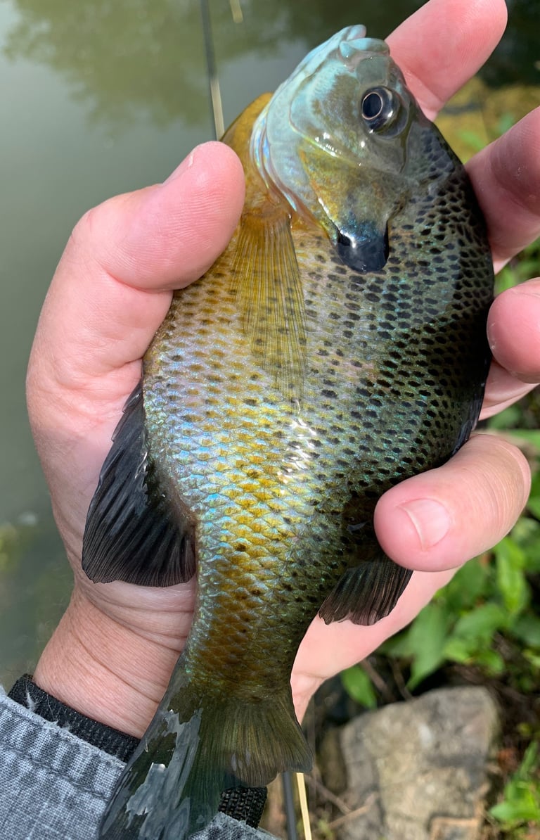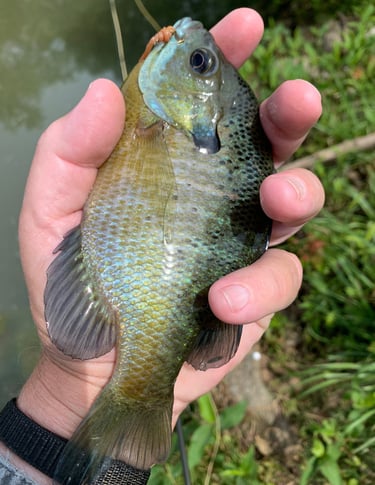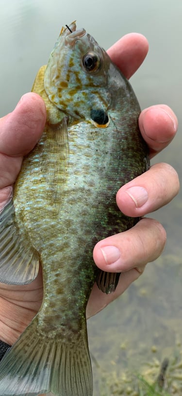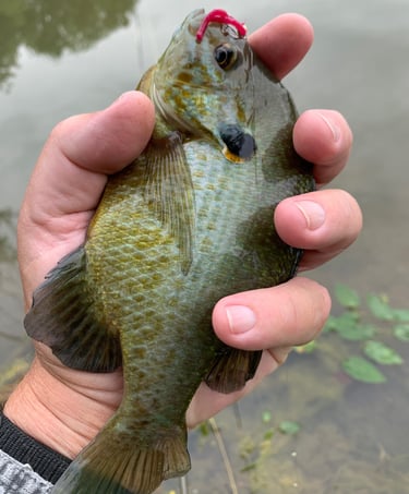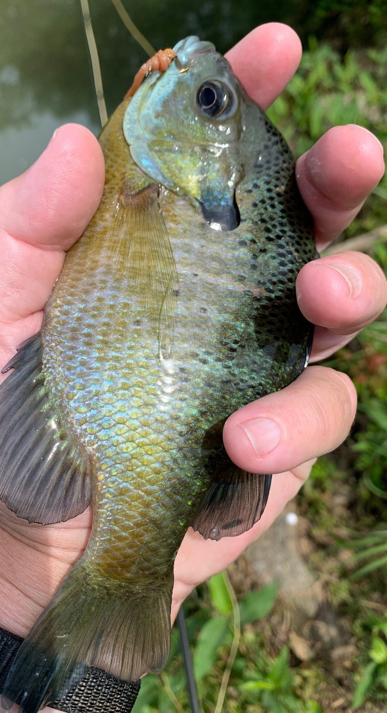 Meanwhile, in one instance I was a little distracted while fishing a Rubber Leg and a large bluegill just about took the fly rod out of my hand. Note where the Rubber Leg is hooked in the mouth of a bluegill and a red ear. Don't see the Pat's? That's because it's in their throat. A downside to the upside of few missed fish on any fly...with legs. Kind of a "this time of year thing", as well.
