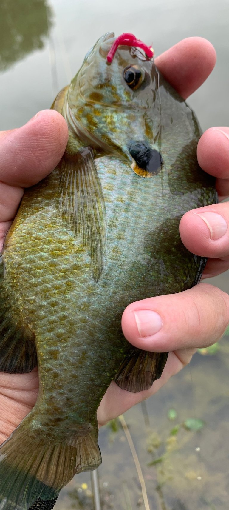 While extremely effective, the Squirmy Worm missed a lot of bluegill or red ear. Note where each species is hooked in the mouth.