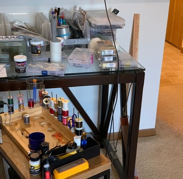…Tying flies, you’re tying things smaller than your pinky finger nail much of the time. So it’s not unusual for anyone to have certain materials that could last a lifetime, even if you bought them with your first allowance as a child. But I never care to tie flies as “a business”, something that could justify “so much stuff”. The consistency and repetitious good quality those guys and gals produce is…mind boggling. My intuition told me that some tyers really didn’t care to fish as much as tie. But that couldn’t be true. Would be like me learning to cut and sew high fashion clothes when all I care about are my cargo pants and Wrangler shirts. Then I saw it…a comment about one of my fly tying guru’s videos. “I don’t think I ever care to catch a fish. But I think I’ll buy materials and tie some flies.”