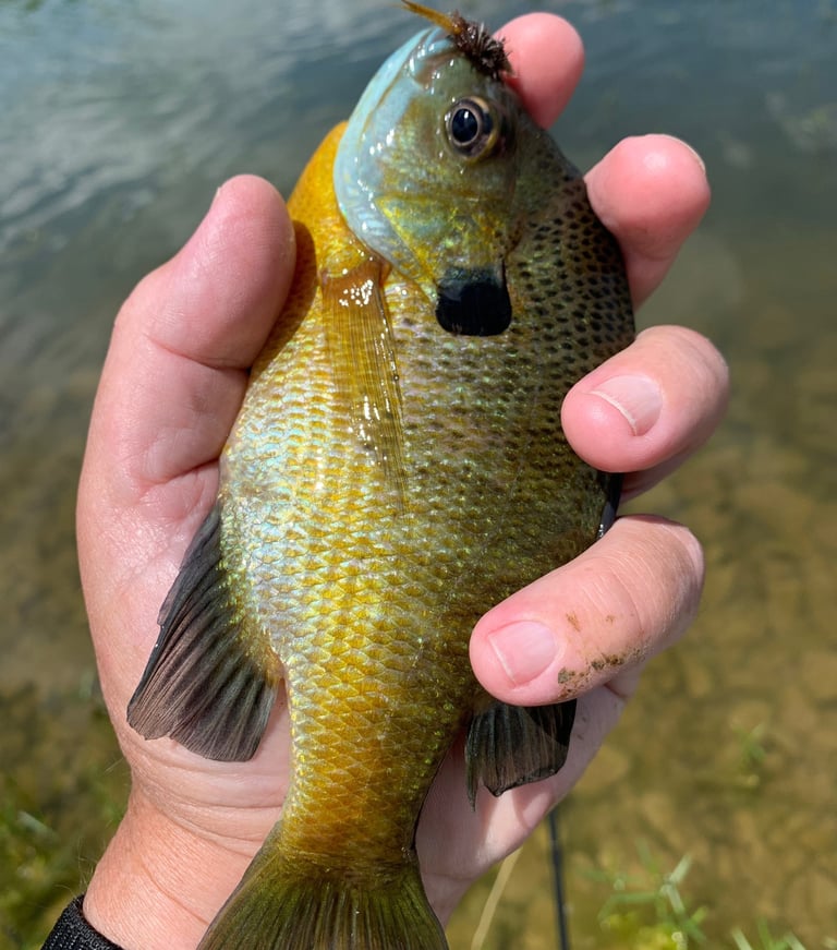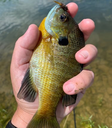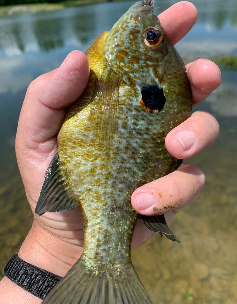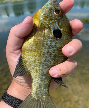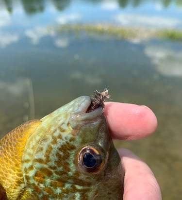 So I spent 55 minutes covering about 1/2 mile but when I got to this place, I spent the next three hours "back and forthing" a 30 yard area of two weed patches. Fifty...50...bluegill, red ear, and one confused bass during that three hours. And I quit. Because I need to learn to stop fishing and go "do life".